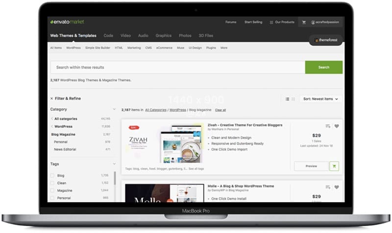 My current theme is with Envato and I’m obsessed with it! I love how many design options they have.