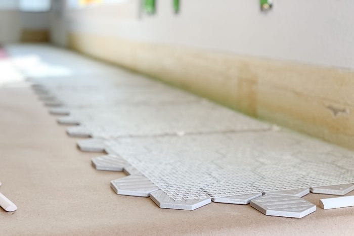 I took a tile class at Haven Conference last summer from Jeffrey Court, ironically, and ever since then I’ve told Justin on many occasions we need to find a reason to tile. I didn’t quite expect our first time to be in our kitchen, but we don’t tend to do things half way, so why not?!