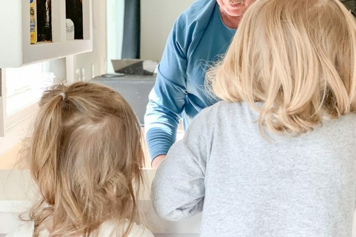 I am so grateful that my mom’s husband and father-in-law were able to come over and share their expertise to help with some of the tougher projects like cutting the butcher block for the sink and attaching the two corner pieces together last week. Drilling into your gorgeous new butcher block counters is a little terrifying and it’s not like you can fix it if you mess up.